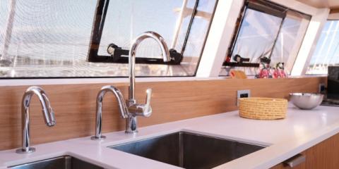 The catamaran offers 4 comfortable double cabins and 2 bathrooms, ensuring a high level of comfort and privacy for the entire crew, whether you are sailing with family or friends.