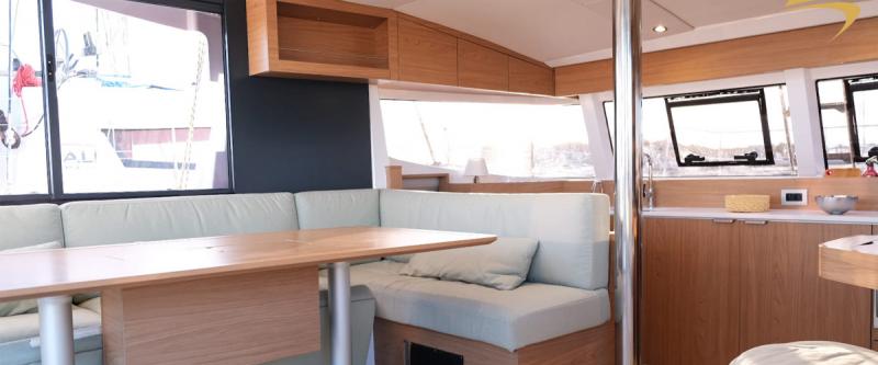 Designed to offer a smooth and convivial sailing experience, Asclepios features a spacious and bright interior, seamlessly connected to the outdoors thanks to Bali’s iconic tilt-and-turn door, a signature innovation of the brand. This clever layout creates a continuous living space between the saloon and the cockpit, ideal for enjoying both navigation and time at anchor.