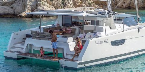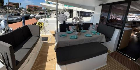 Welcome aboard the Fountaine Pajot Astrea 42 (2024) departing from Marina Golfo Cugnana.