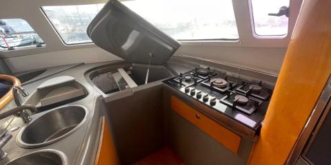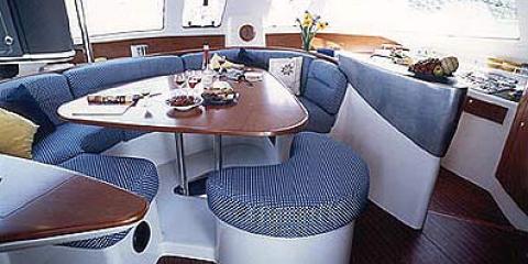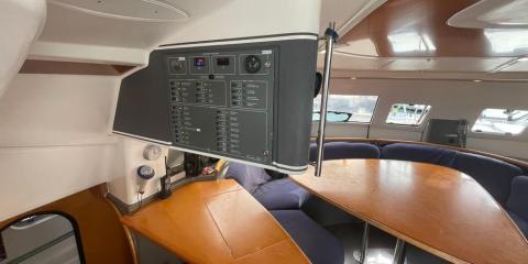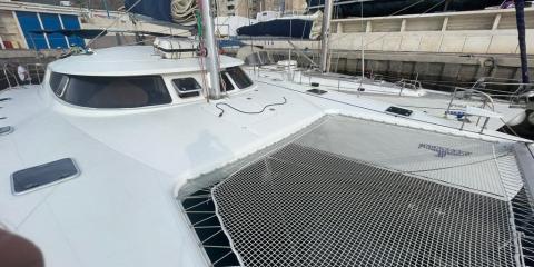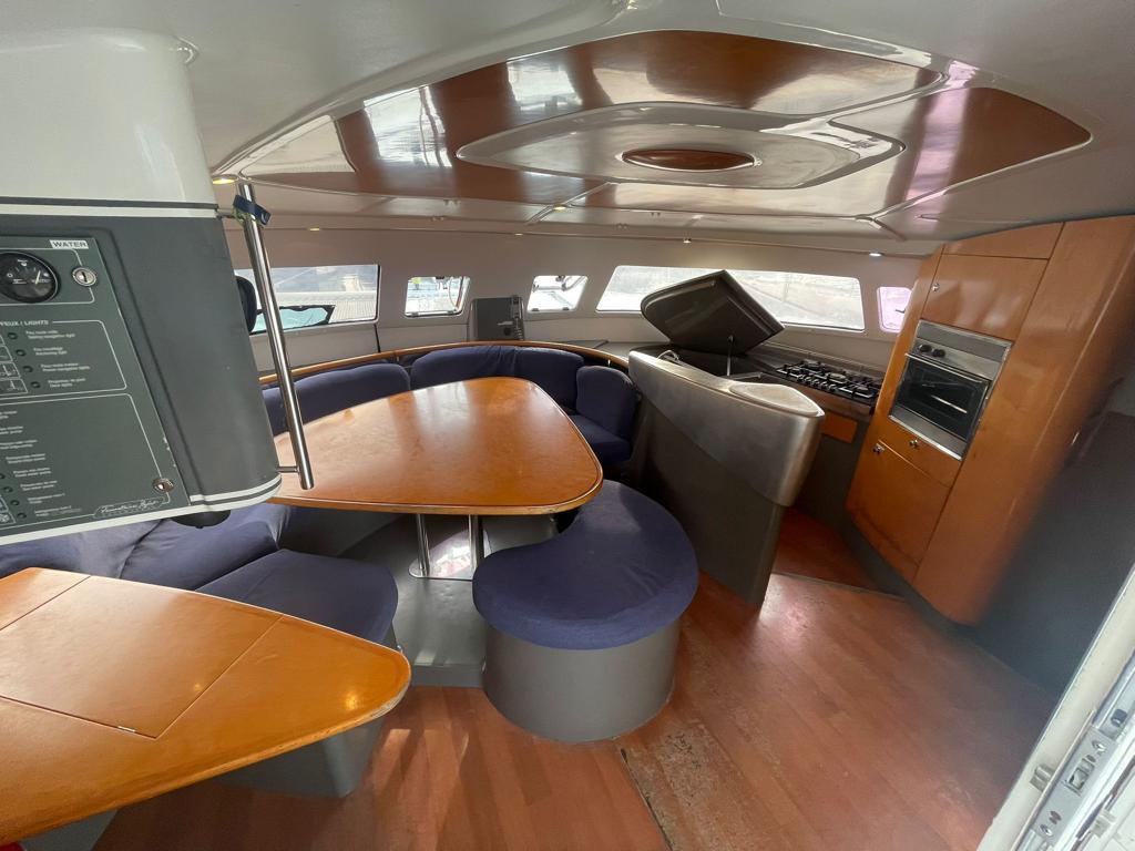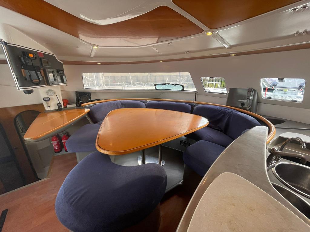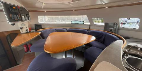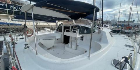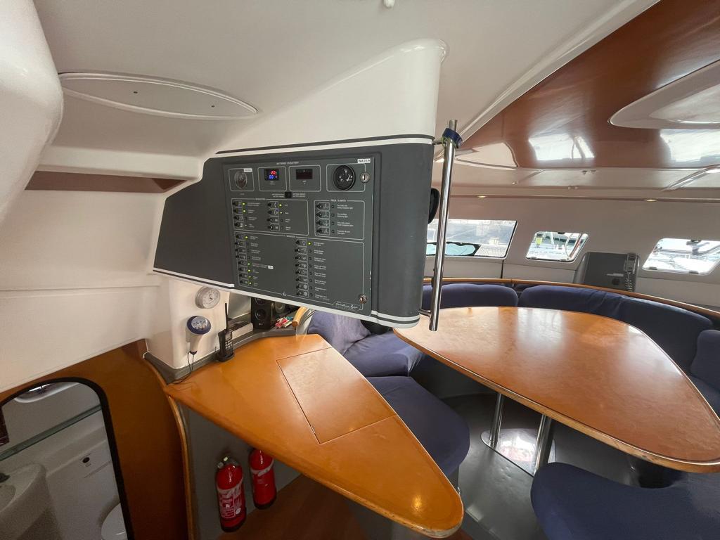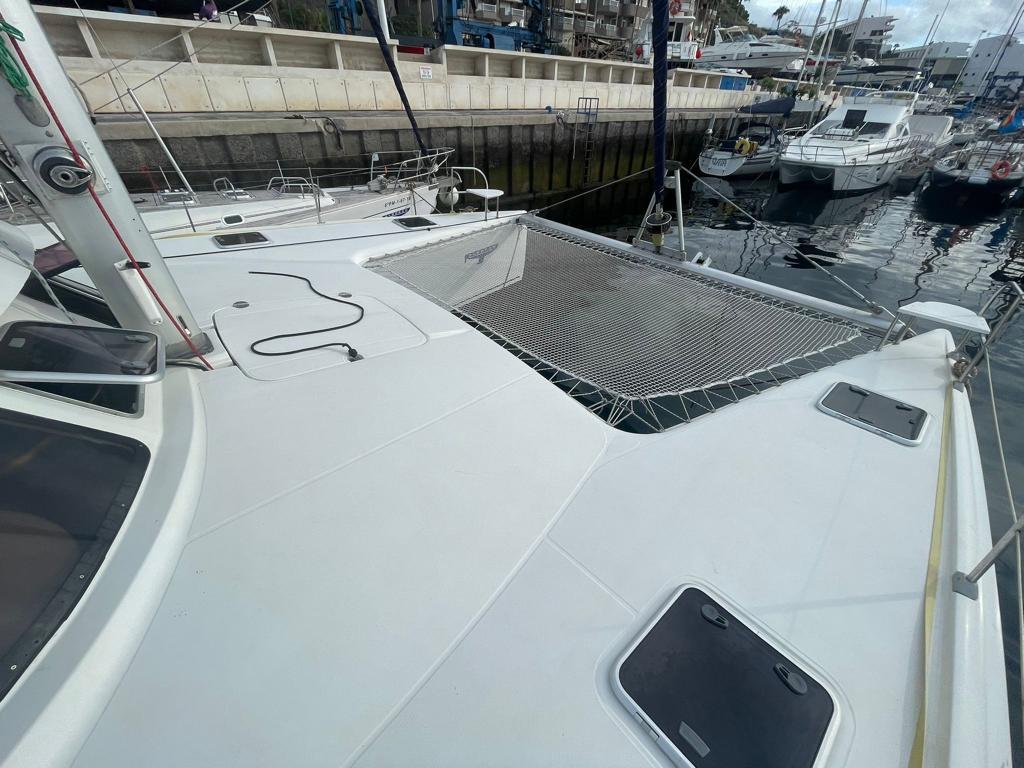 This Fountaine Pajot Bahia 46 is available for charter from Sal Harbour. It features 6 cabins, perfect for your holidays.
