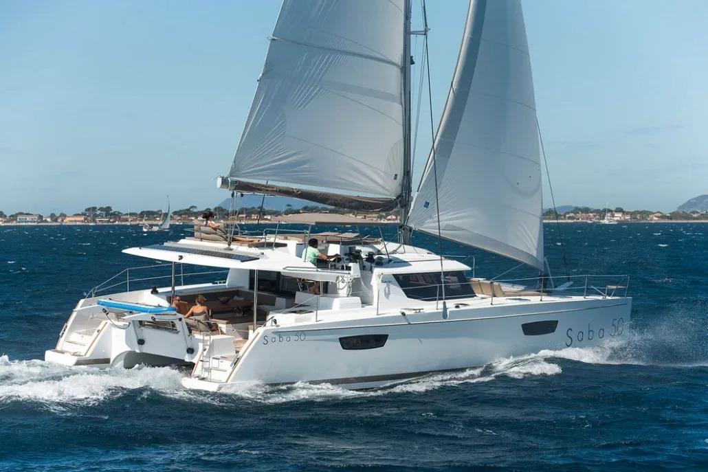 Charter this Catamaran Fountaine Pajot Saba 50 from Yacht Club Mai with APACA Location.