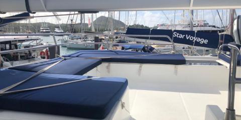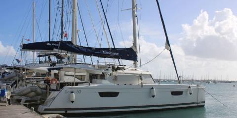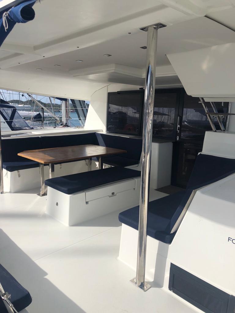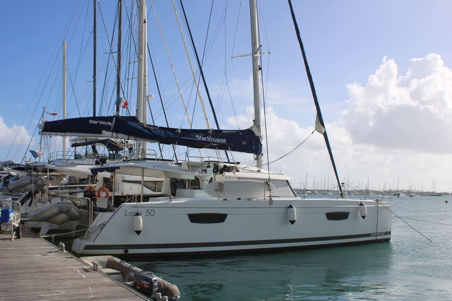 Welcome aboard the Fountaine Pajot Saba 50 (2018) departing from Le Marin.