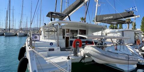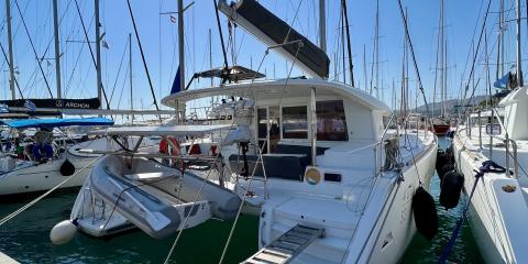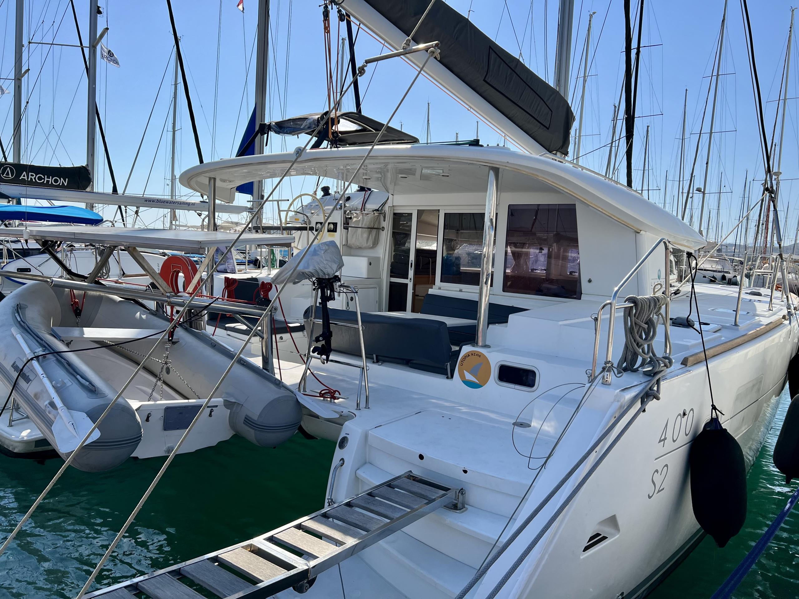 Welcome aboard the Lagoon 400 (2015) departing from Rhodes New Marina.