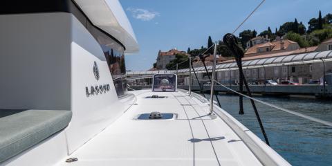 This Lagoon 42 is available for charter from ACI Marina Dubrovnik. It features 3 cabins, perfect for your holidays.