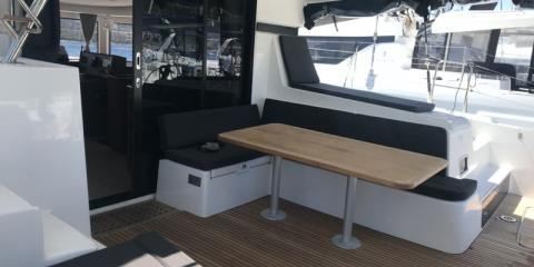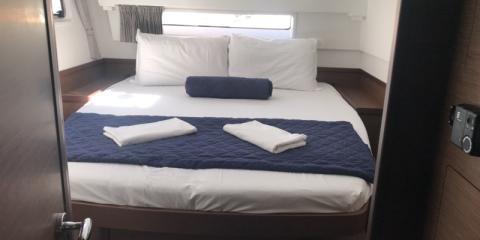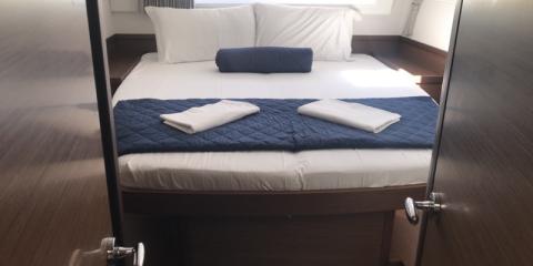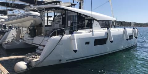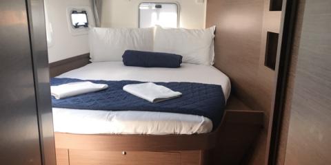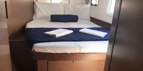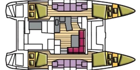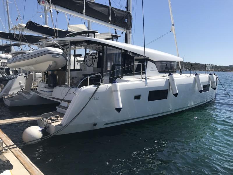 This Lagoon 42 is available for charter from Cala dei Sardi. It features 4 cabins, perfect for your holidays.