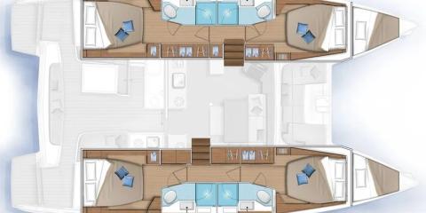 This Lagoon 46 is available for charter from Alimos Marina. It features 6 cabins, perfect for your holidays.
