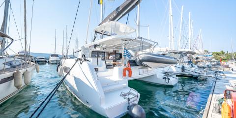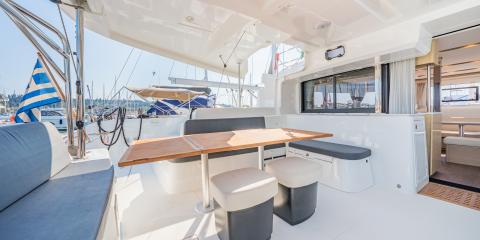 Welcome aboard the Lagoon 46 (2024) departing from D-Marin Marina Gouvia.