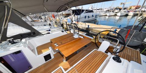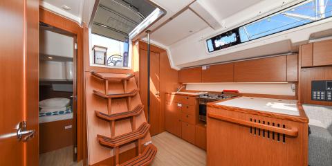 This Bavaria C38 is available for charter from Marina Zadar. It features 3 cabins, perfect for your holidays.