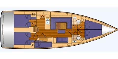 This Bavaria C45 is available for charter from Göteborg City Marina. It features 5 cabins, perfect for your holidays.