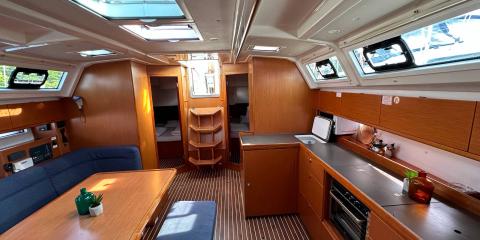 This Bavaria Cruiser 46 is available for charter from Lygia Marina. It features 4 cabins, perfect for your holidays.