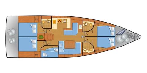 This Beneteau Oceanis 51.1 is available for charter from Marina del Sur. It features 5 cabins, perfect for your holidays.