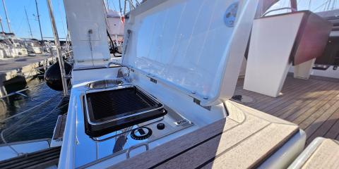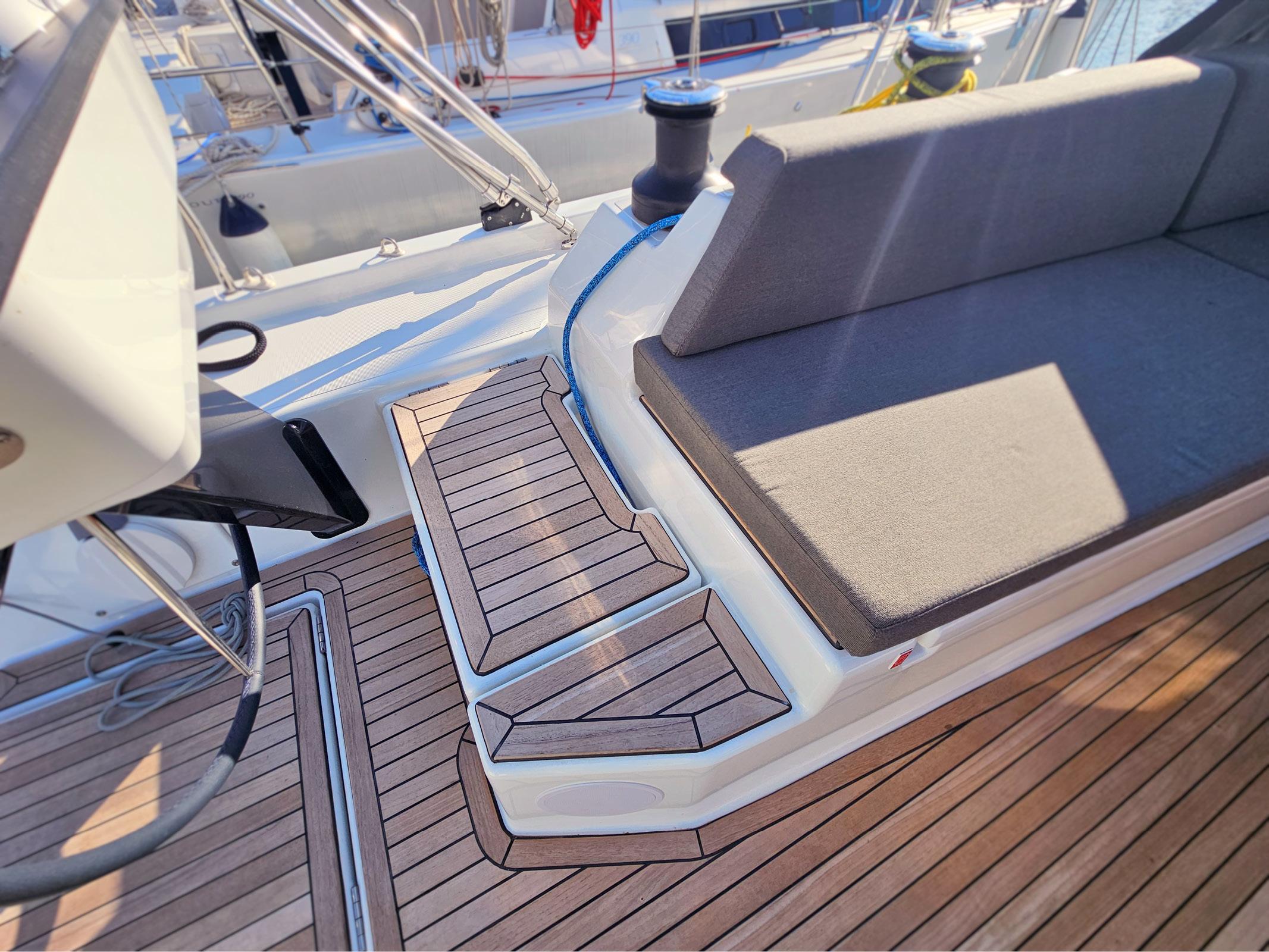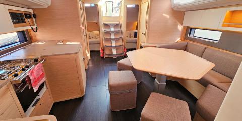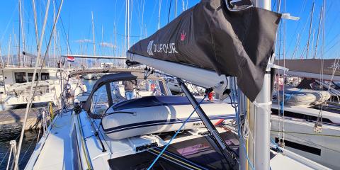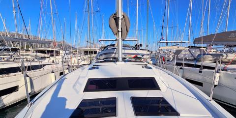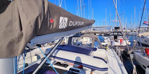 This Dufour 44 is available for charter from Marina Kaštela. It features 4 cabins, perfect for your holidays.