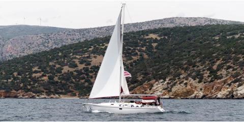 Welcome aboard the Dufour Classic 43 (2003) departing from Nydri Port.
