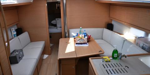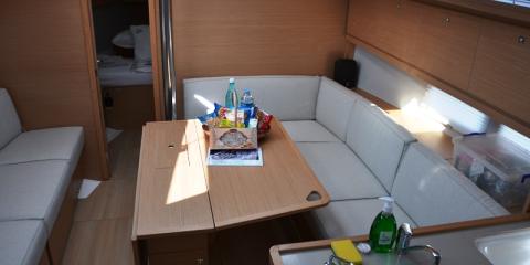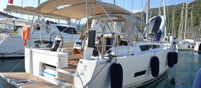 This Dufour Grand Large 390 is available for charter from Netsel Marmaris Marina. It features 3 cabins, perfect for your holidays.