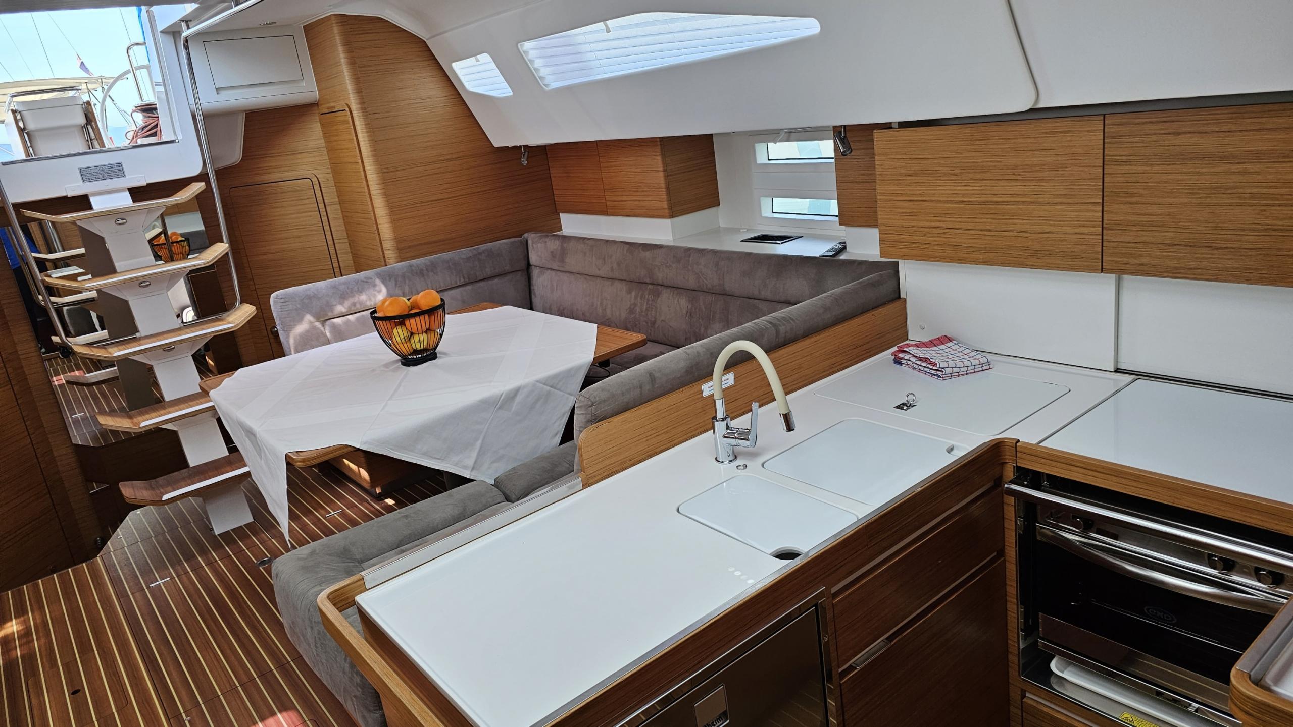 This Elan Impression 50 is available for charter from Marina Baška Voda. It features 6 cabins, perfect for your holidays.