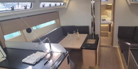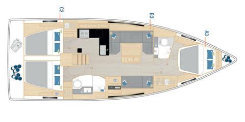 This Hanse 410 is available for charter from Lykia Yacht Club. It features 3 cabins, perfect for your holidays.