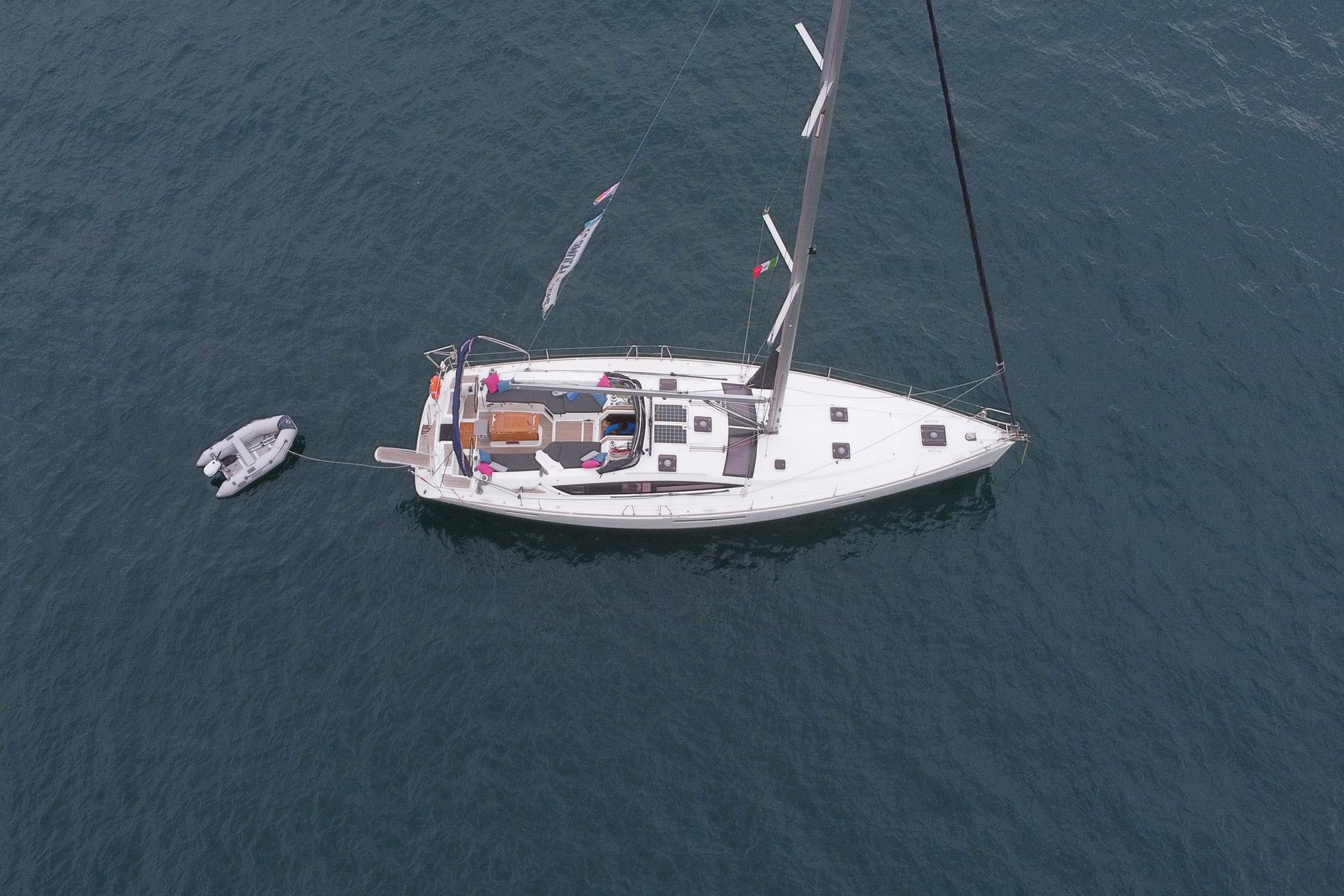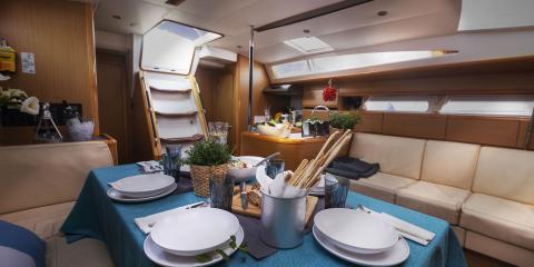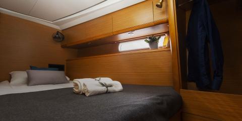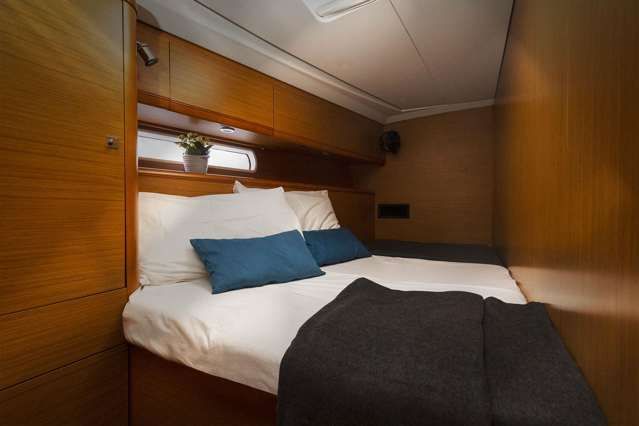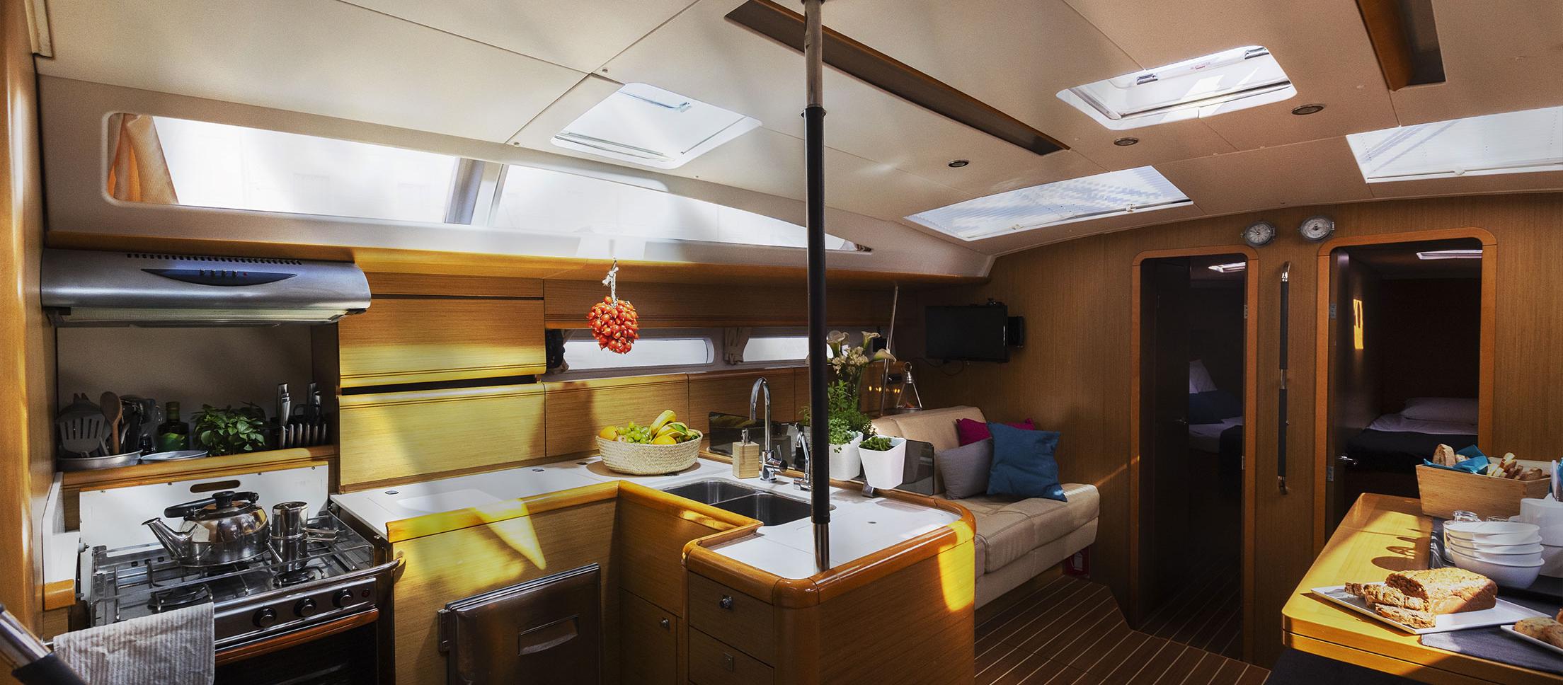 This Jeanneau 53 is available for charter from Darsena Acton. It features 6 cabins, perfect for your holidays.