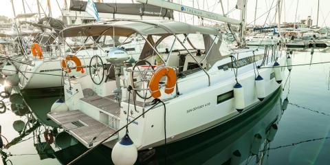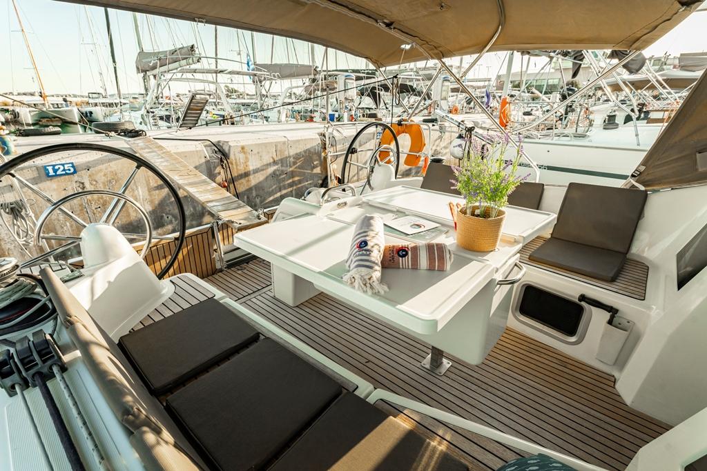 This Jeanneau Sun Odyssey 410 is available for charter from Rhodes New Marina. It features 3 cabins, perfect for your holidays.