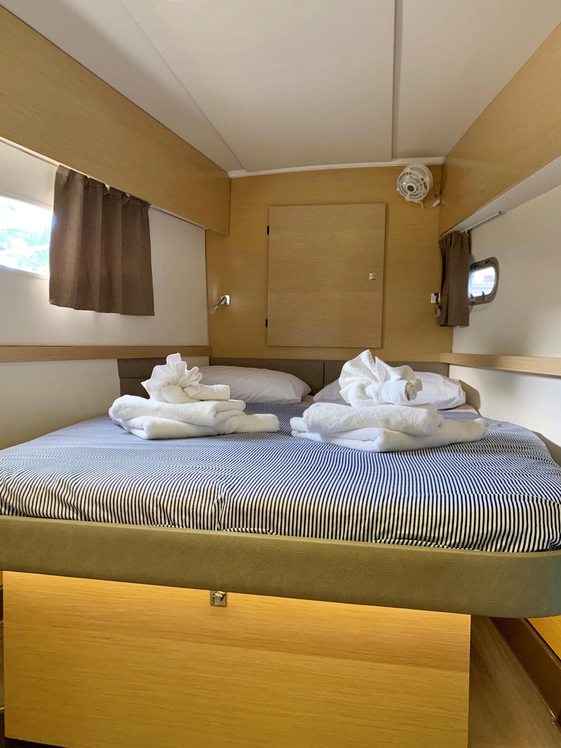 +33 04 94 38 43 01Bienvenue à bord du Fountaine Pajot Helia 44 de 2015 au départ de Fort Burt Marina.