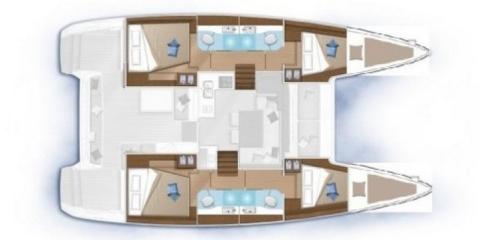 Ce Lagoon 40 est disponible à la location au départ de Marina Kaštela. Il s'agit d'une version 6 cabines, idéal pour vos vacances.