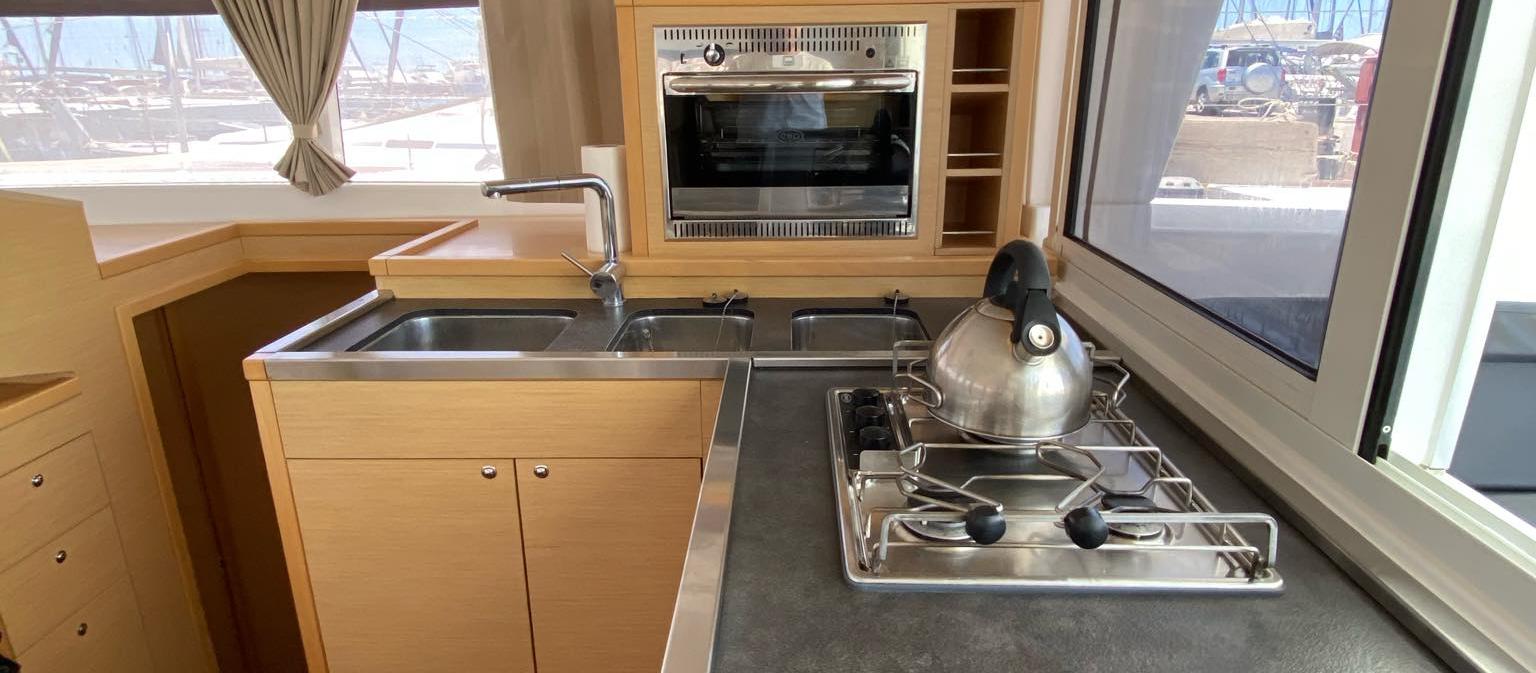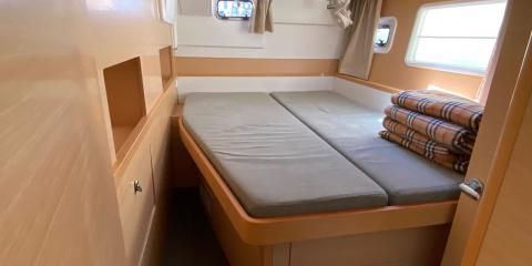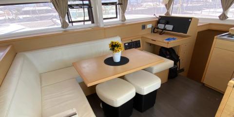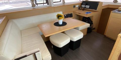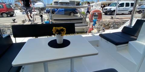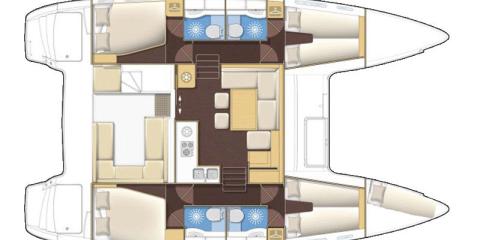 Ce Lagoon 400 est disponible à la location au départ de Alimos Marina. Il s'agit d'une version 6 cabines, idéal pour vos vacances.
