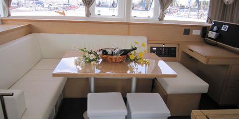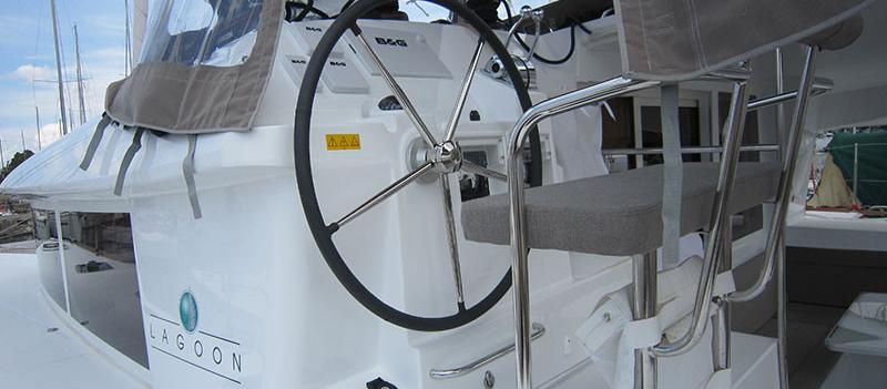 Bienvenue à bord du Lagoon 400 de 2015 au départ de Lavrion Main Port.
