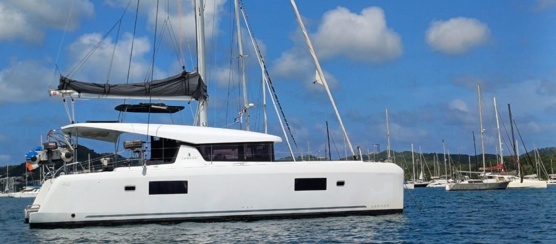 Bienvenue à bord du Lagoon 42 de 2020 au départ de Le Marin.