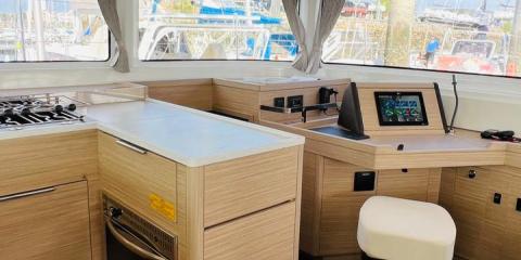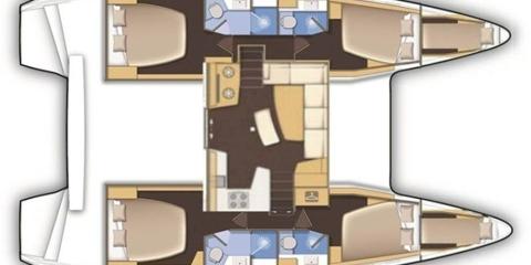 Ce Lagoon 46 est disponible à la location au départ de D-Marin Marina Gouvia. Il s'agit d'une version 6 cabines, idéal pour vos vacances.