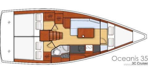 Ce Beneteau Oceanis 35.1 est disponible à la location au départ de ACI Marina Split. Il s'agit d'une version 3 cabines, idéal pour vos vacances.
