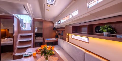 Ce Beneteau Oceanis 40.1 est disponible à la location au départ de ACI Marina Split. Il s'agit d'une version 4 cabines, idéal pour vos vacances.