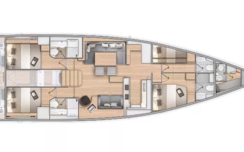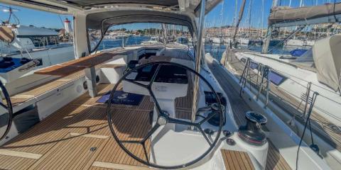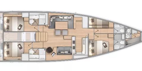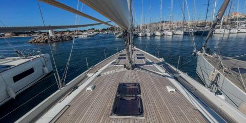 Ce Beneteau Oceanis 60 est disponible à la location au départ de Les Marines de Cogolin. Il s'agit d'une version 4 cabines, idéal pour vos vacances.