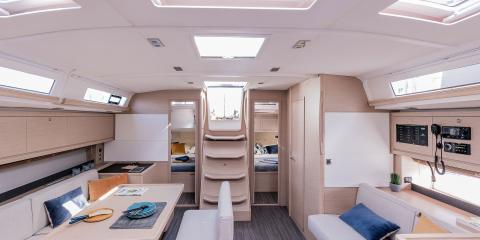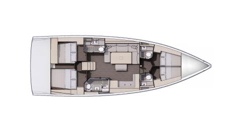 Ce Dufour 470 est disponible à la location au départ de Cannigione. Il s'agit d'une version 4 cabines, idéal pour vos vacances.