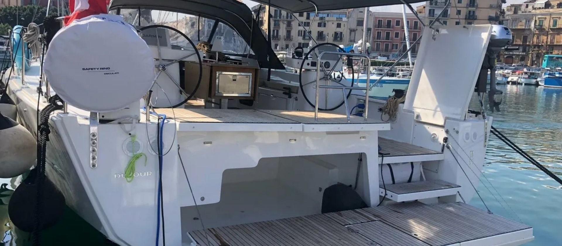 Ce Dufour Exclusive 56 est disponible à la location au départ de Marina di Cagliari. Il s'agit d'une version 5 cabines, idéal pour vos vacances.