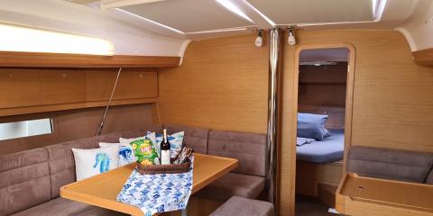 Ce Dufour Grand Large 412 est disponible à la location au départ de Netsel Marmaris Marina. Il s'agit d'une version 2 cabines, idéal pour vos vacances.