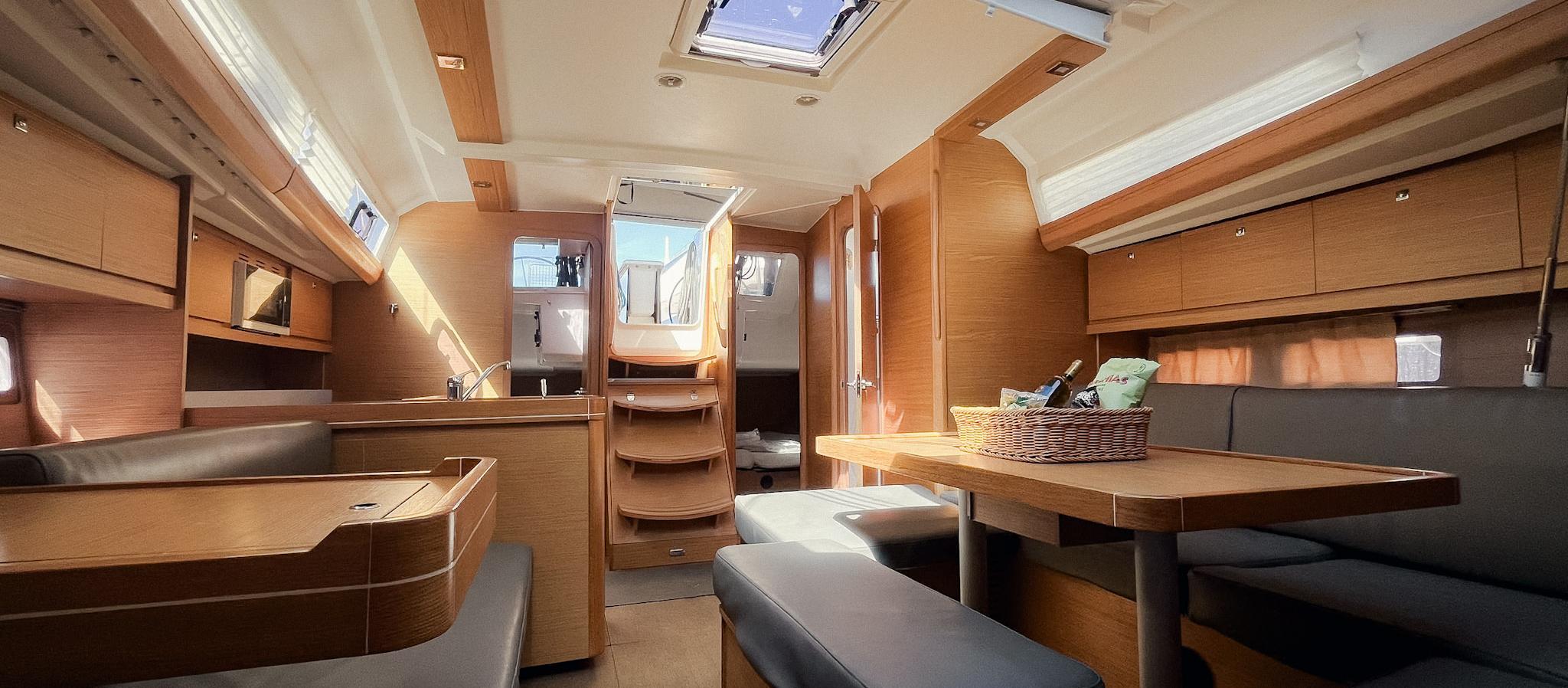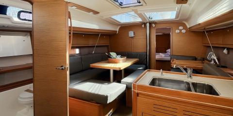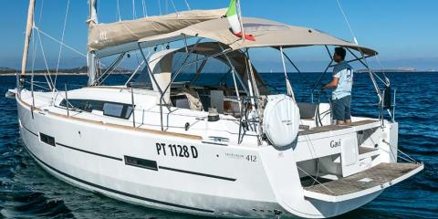 Ce Dufour Grand Large 412 est disponible à la location au départ de Marina di Portisco. Il s'agit d'une version 3 cabines, idéal pour vos vacances.
