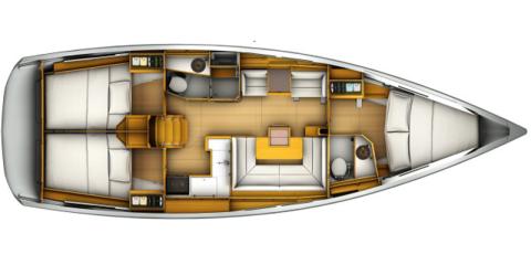 Ce Jeanneau Sun Odyssey 419 est disponible à la location au départ de Paros port. Il s'agit d'une version 3 cabines, idéal pour vos vacances.