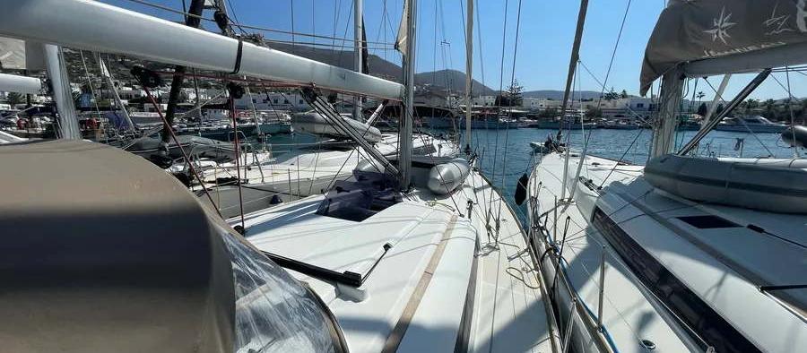 Bienvenue à bord du Jeanneau Sun Odyssey 419 de 2019 au départ de Paros port.