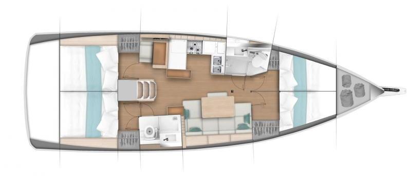 Ce Jeanneau Sun Odyssey 440 est disponible à la location au départ de Le Marin. Il s'agit d'une version 4 cabines, idéal pour vos vacances.
